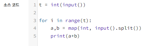 3라인 : for문을 이용하여 range(t)까지 반복한다.