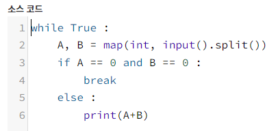 3라인 : A와 B가 0을 만날 경우 반복문이 중단해야 하므로 if문을 사용하여 반복문을 종료한다.